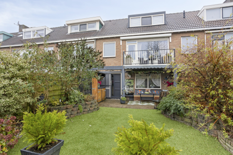 Er is een diepe tuin achter de woning. Deze is ook achterom bereikbaar. Achter het huis is geen bebouwing, waardoor dit een heerlijke groene ‘vibe’ geeft in de tuin. De tuin is fraai aangelegd met strakke bestrating, siertuin en een houten berging voor de fietsen. De berging is tevens uitgevoerd met elektra.
